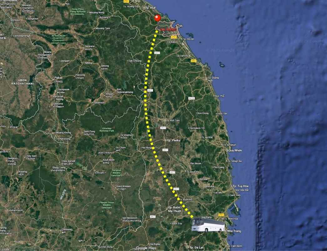 Lưu ý: Quãng đường và thời gian di chuyển của vé xe đi từ Nha Trang – Đà Nẵng là dự kiến: