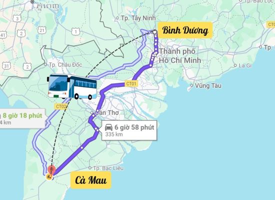 PHƯƠNG TIỆN DI CHUYỂN TỪ BÌNH DƯƠNG ĐI CÀ MAU VÀ NGƯỢC LẠI