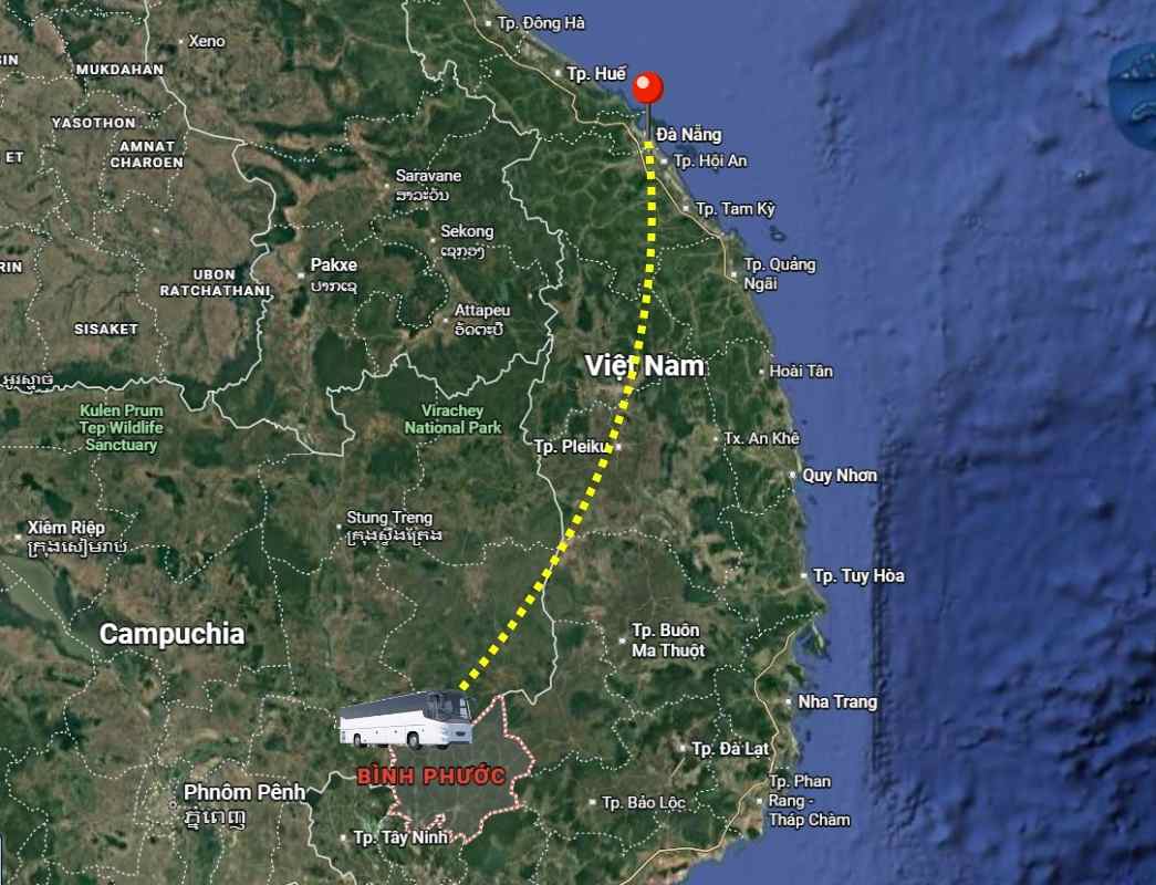 Lưu ý: Quãng đường và thời gian di chuyển của vé xe đi từ Bình Phước – Đà Nẵng là dự kiến: