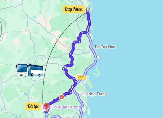- Tuyến xe Quy Nhơn đi Đà Lạt khởi hành hàng ngày, nhiều khung giờ.